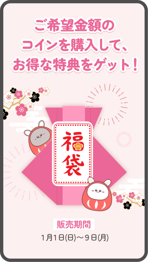 コインのチャージ額に応じて、お得な特典をゲットできる新年限定のイベントです!