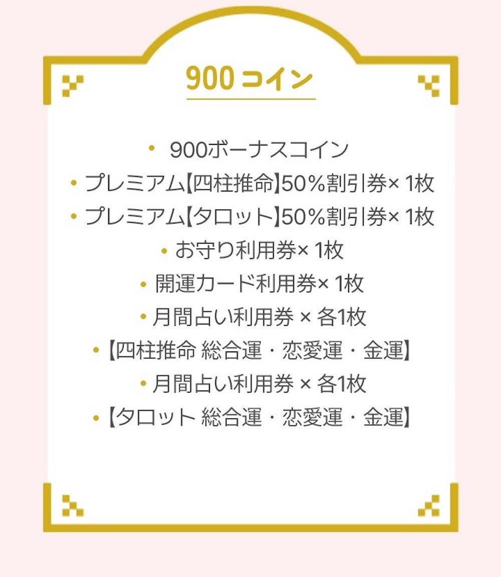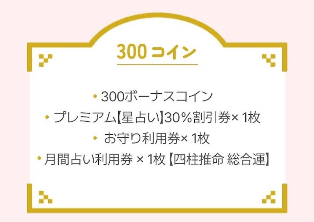 | 一部有料占い鑑定料 | 100コイン〜1,500コイン |