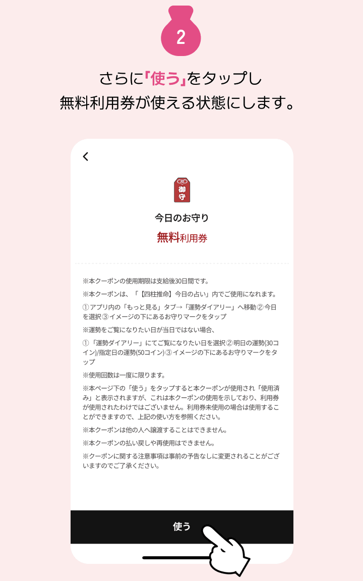 福袋で獲得したクーポンは、下記の方法にしたがってご使用ください。