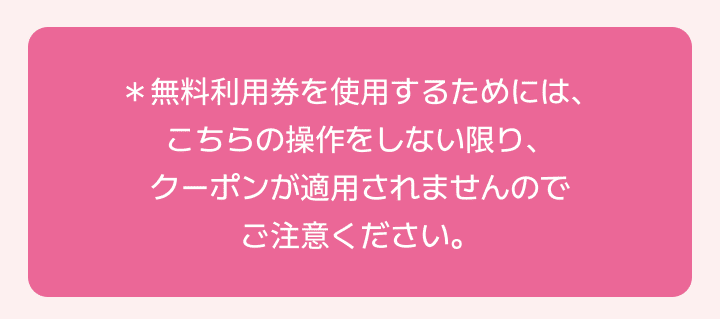 - 無料利用券の詳細:該当するクーポンの下段の注意事項にてご確認いただけます。