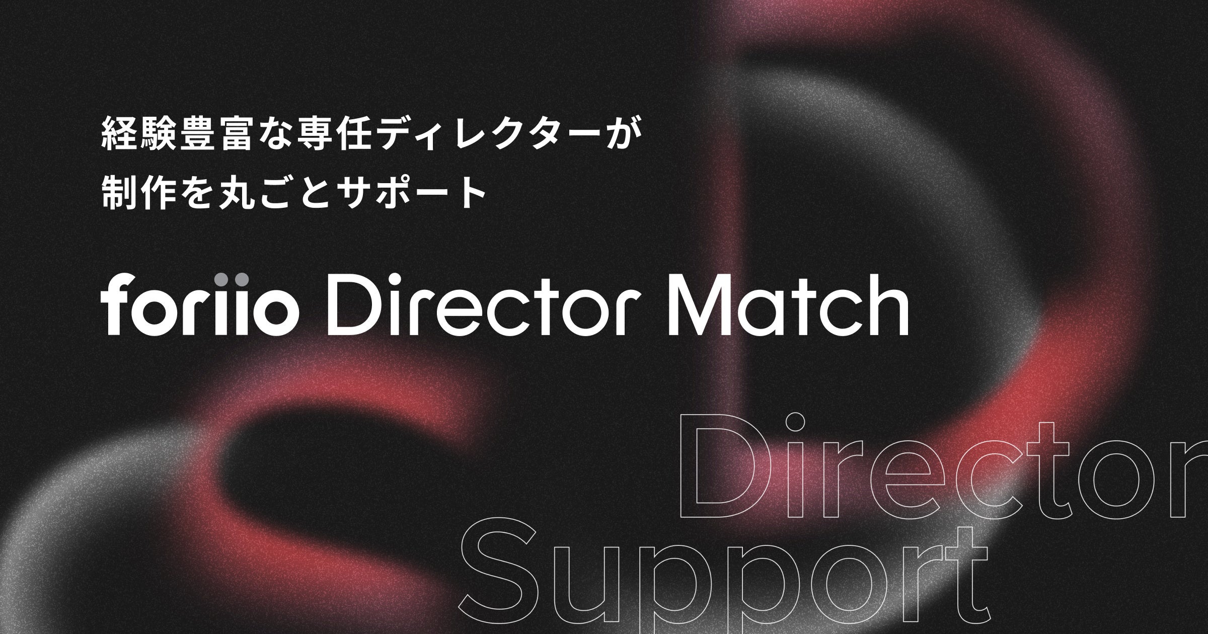 『Director Match(https://match.foriio.com/)』は、300,000点以上の制作実績をもとに、ご希望に沿ったクリエイターをご提案し、案件の進行から納品までを全てディレクターにお任せいただけるサービスです。