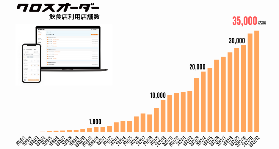 サービス開始から約3年、当月のアクティブな利用店舗数は35,000店舗を超え、急速に拡大しております。また、利用店舗数の増加に伴い、全国各地の卸売業者様から導入を希望するお声もいただくようになりました。