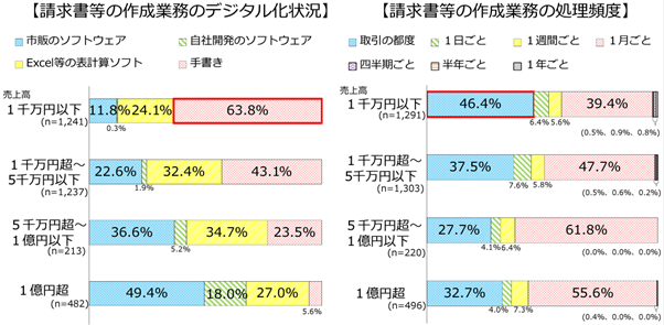 一方、我が国の中小企業には請求書を含む帳簿書類を手書きで作成する文化が色濃く残っています。特に売上高1千万円以下の小規模事業者においては、現在も全体の6割以上の事業者が手書きにて請求書を作成しているという調査結果もあり、商取引上の一端を担う経理業務のDXにおける大きな課題であることは明らかです。