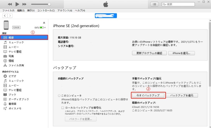 • iPhoneをリセットする前の準備1:データのバックアップを取る