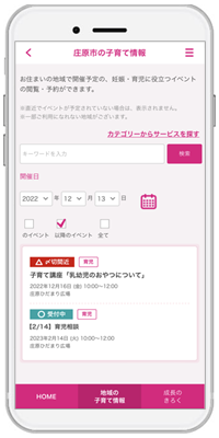 オンライン相談サービスをはじめ、乳幼児健診や母子健康手帳交付予約の手続きのデジタル化に対応し、新たな子育て環境の構築に貢献します。