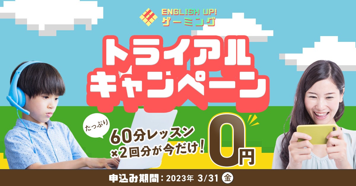 ENGLISH UP!ゲーミングでは、たくさんの方にゲームをプレイしながら英会話を学ぶ良さと楽しさを知ってもらいたいので、レッスン2回分が無料のトライアルキャンペーンを現在実施中です!レッスン時間は本会員のレッスン時間と同じたっぷり60分制。会話をするだけの英会話と違い、ゲームをプレイしながらなのでお子さんでも60分集中して英会話に取り組めます。