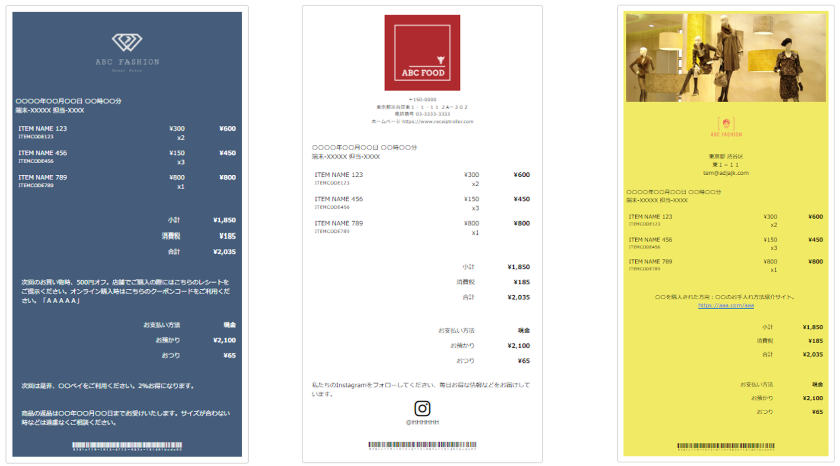 電子レシートのデザインは下記の方法でカスタマイズすることができます。