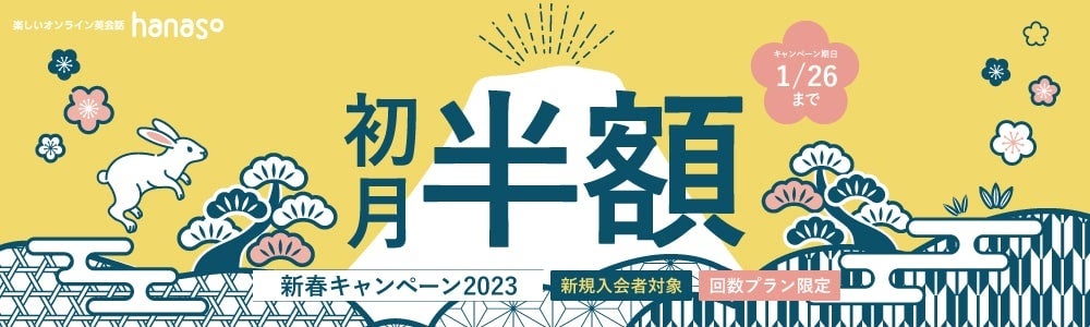 今回は子供向けオンライン英会話hanaso kidsにおいても、同様の回数プランが初月半額の新春キャンペーン2023を行っております。この機会に是非、自宅で手軽にできる英会話レッスンをご体感ください。