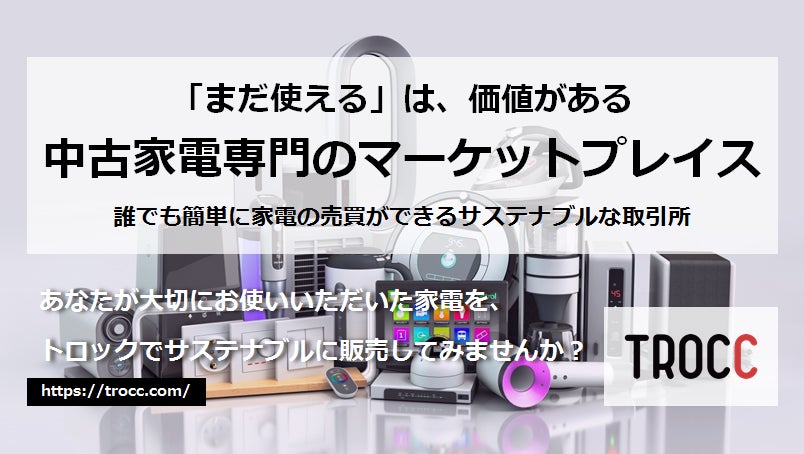 あなたが大切にお使いいただいた家電を、トロックが次にお使いいただく方に責任を持って繋いでいく、サステナブルな取引所です。