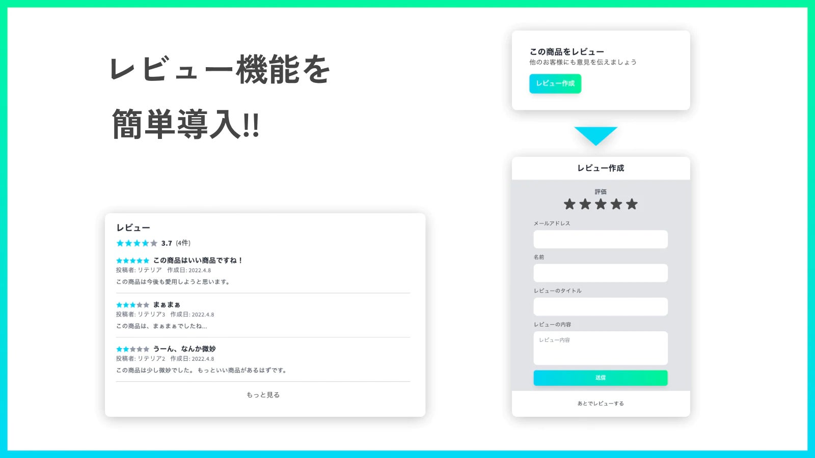 Shopifyストアにレビュー機能を追加することができる日本製のアプリです。