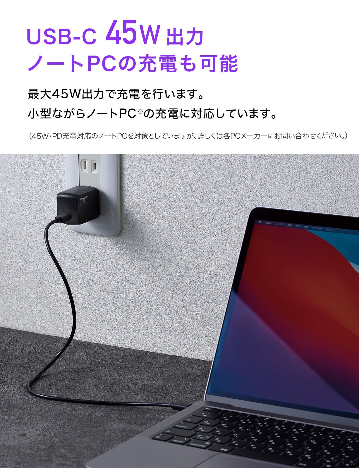 またPPS出力に対応しているため、一部Galaxyスマートフォンなどは急速充電・超急速充電が可能です。