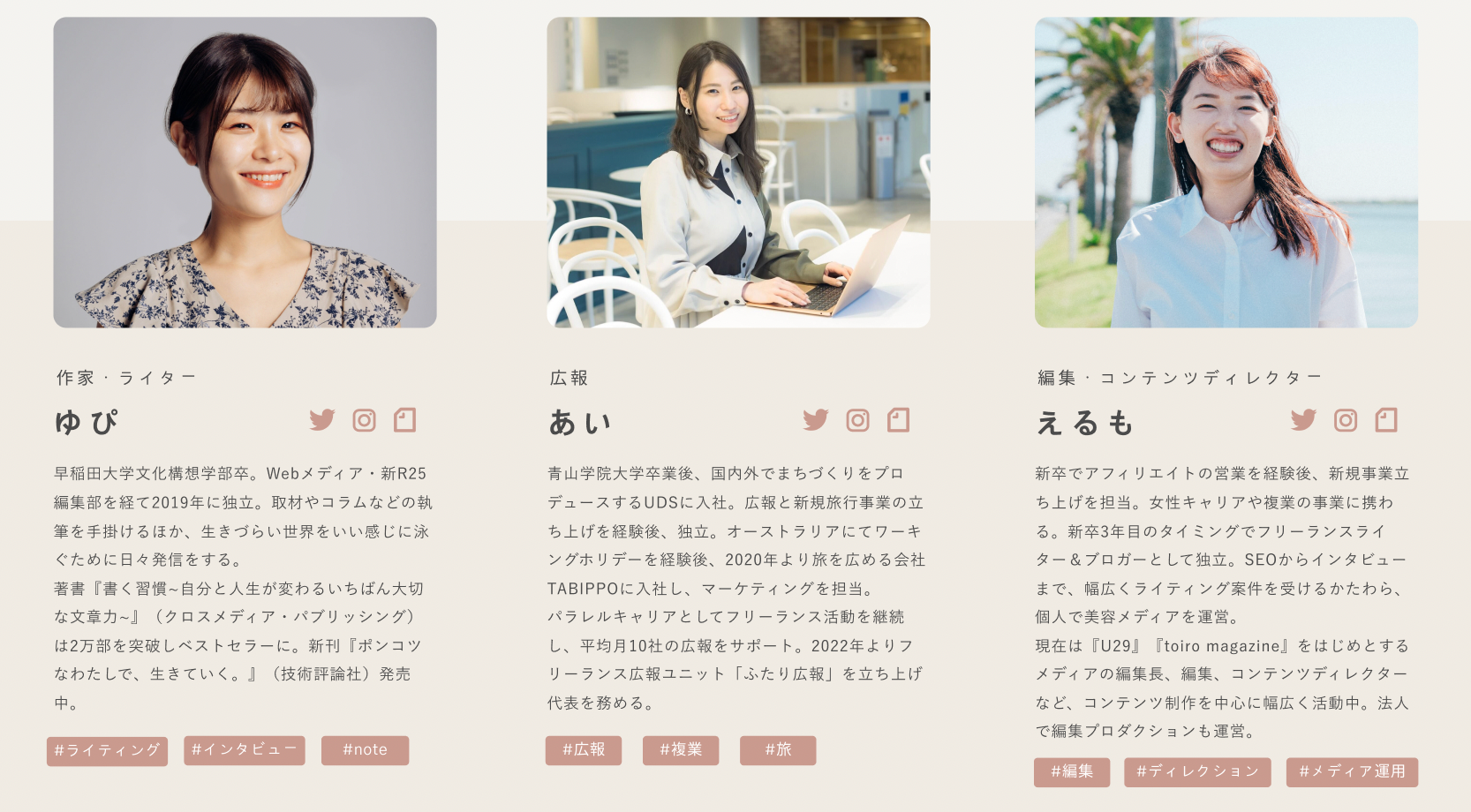 作家・インタビューライターの石川ゆき、広報の多葉田愛、編集・コンテンツディレクターの石橋萌が企画・運営・講師を務めます。