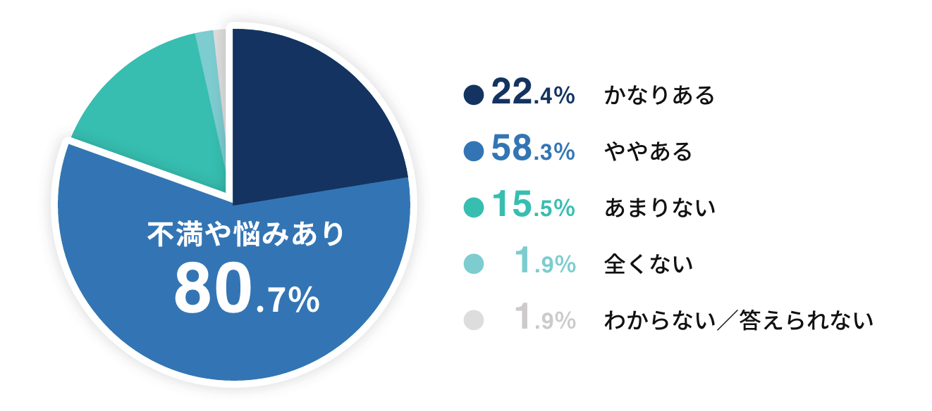 実際に、Webライターに多い「SEOライター」(SEO対策を目的とする記事を作成するライター)103名を対象にした、全研本社株式会社による「SEOライターの悩みに関する調査」では、「あなたは、SEO対策を目的とした記事の執筆・制作をする中で、不満や悩みを感じたことはありますか」という質問に対し、80%が「不満や悩みがある」と回答しました。