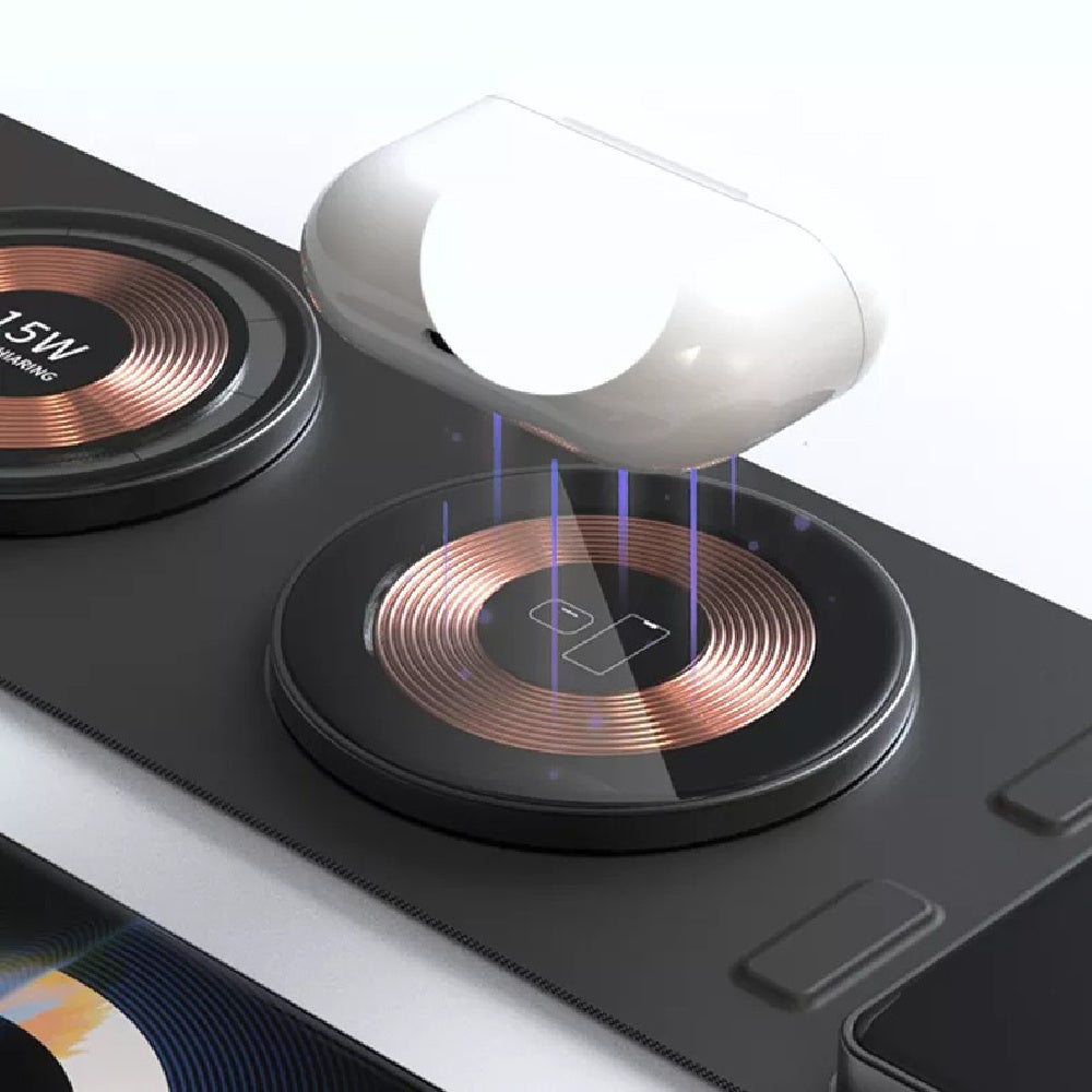 中心の充電ポートは、5WでAirPodsなどのイヤホンを置いて充電をできるようになっていて、