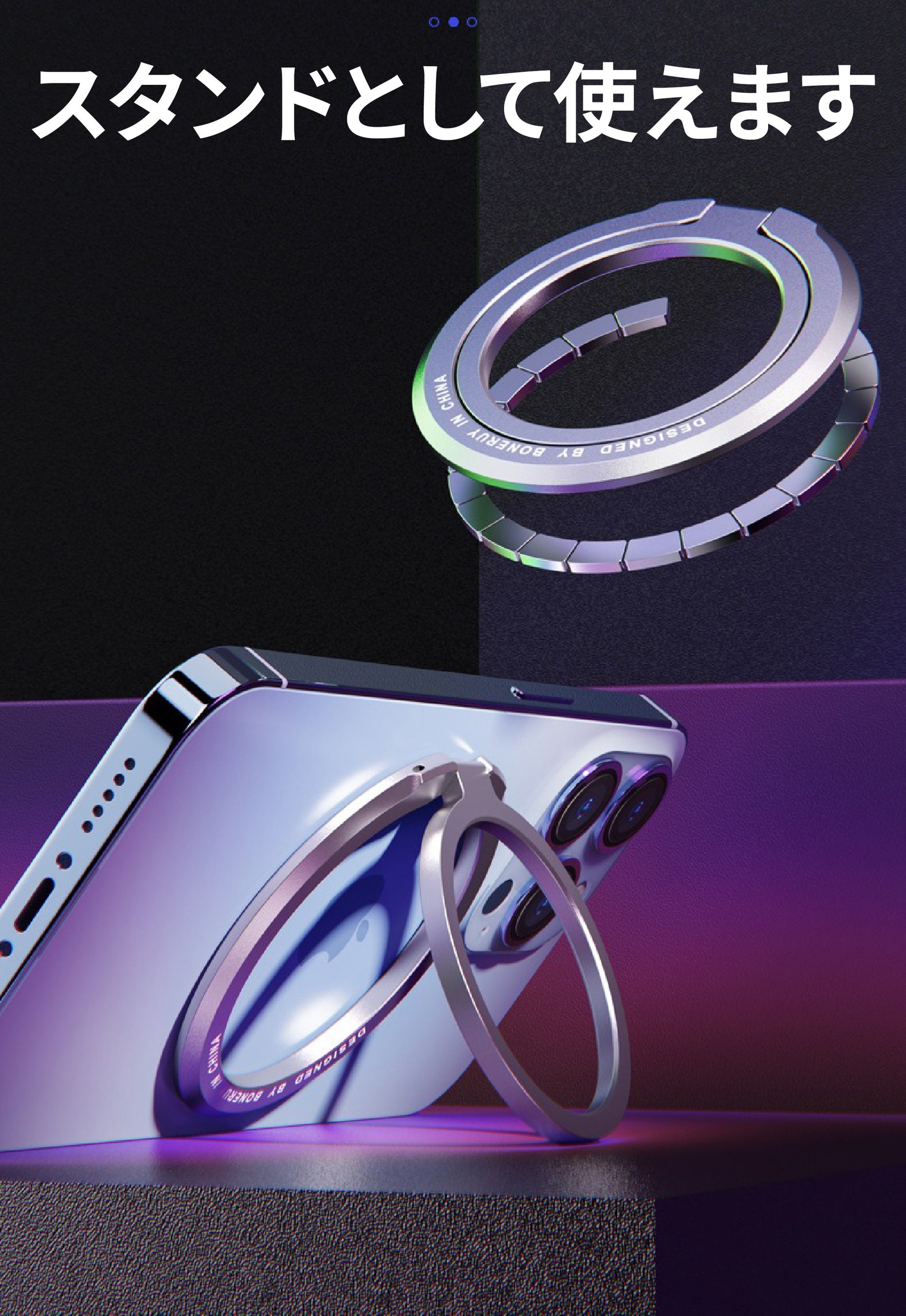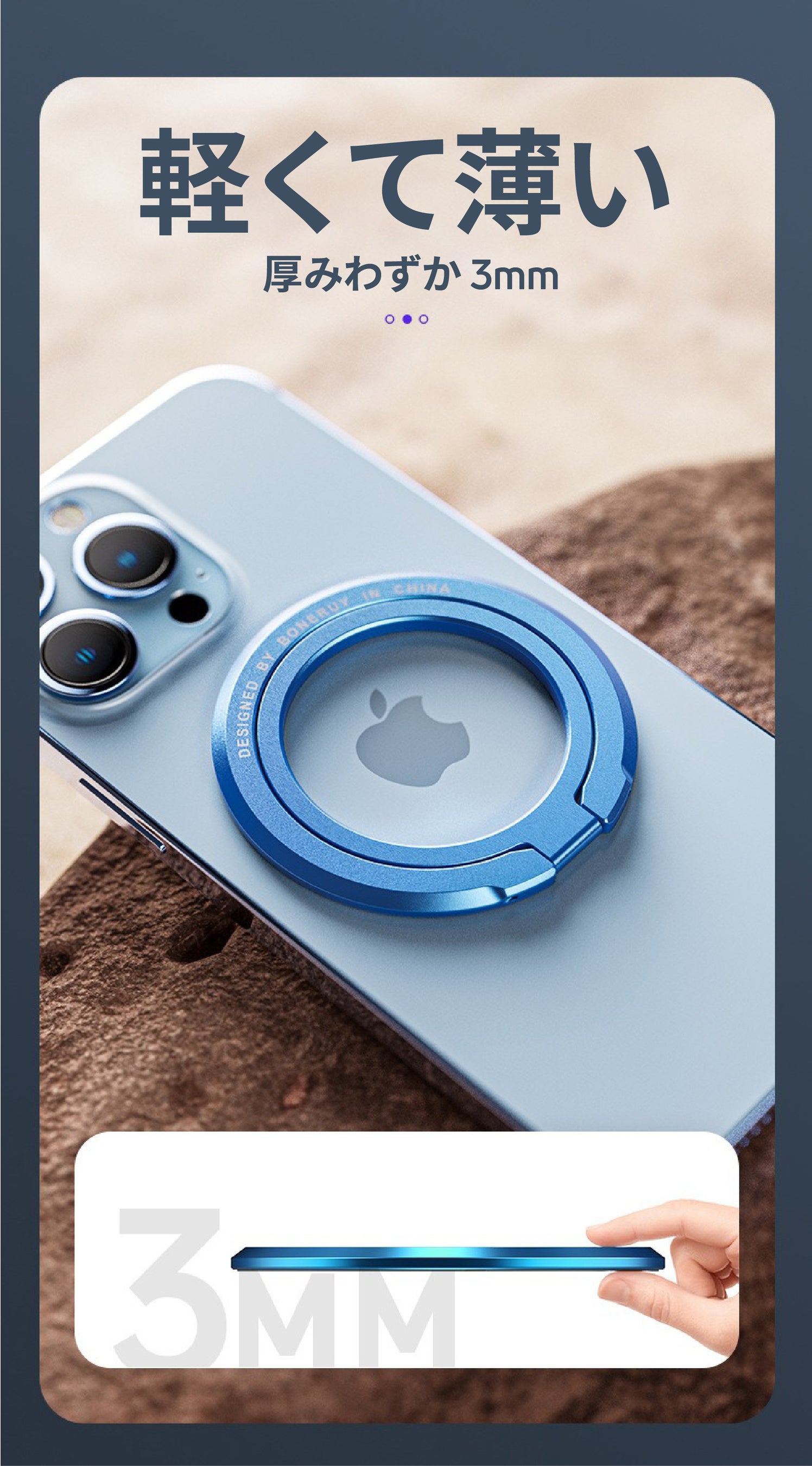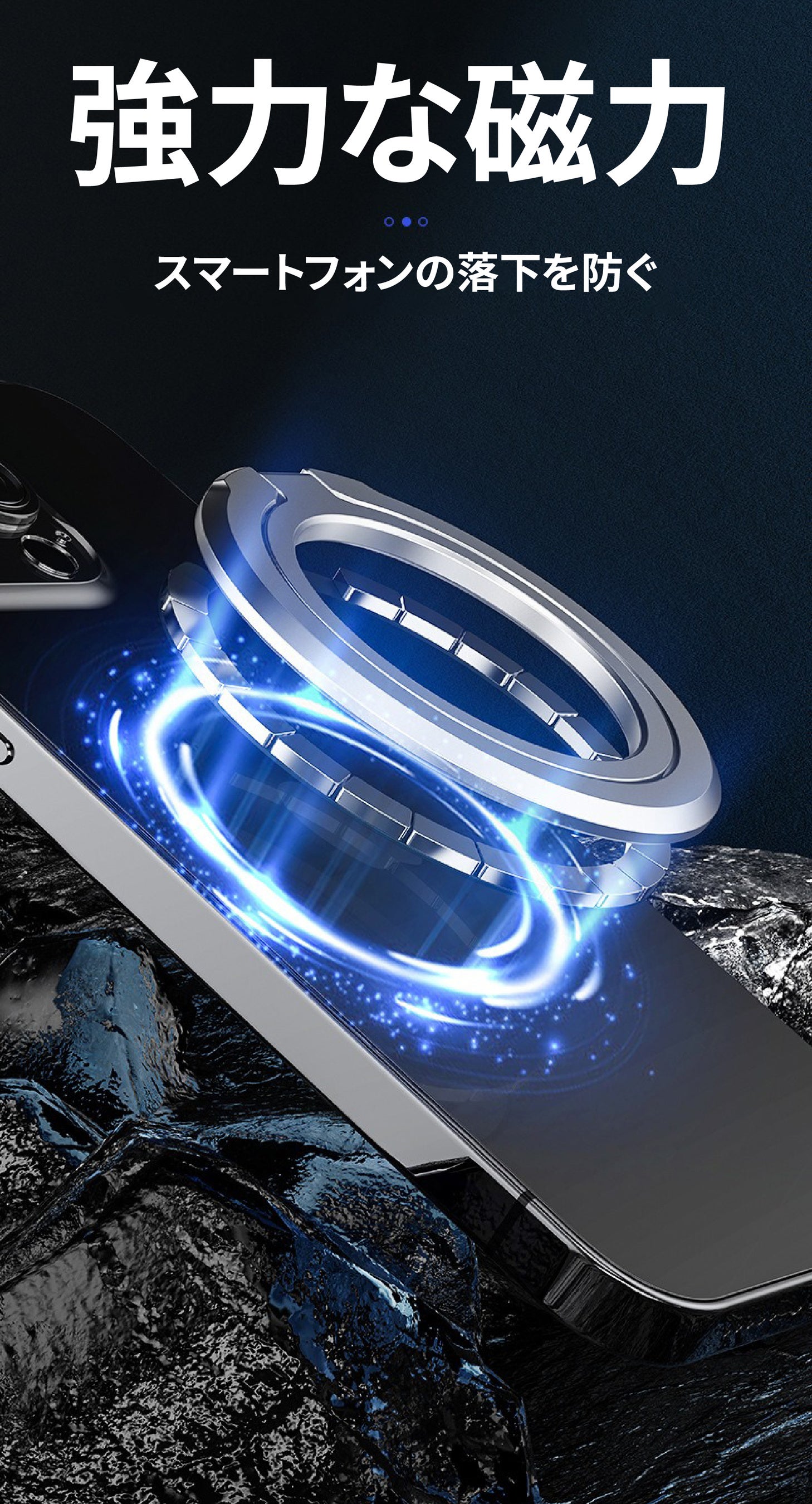 コンパクトながらも強力な磁気の力で、スマートフォンの落下を未然に防ぎます。