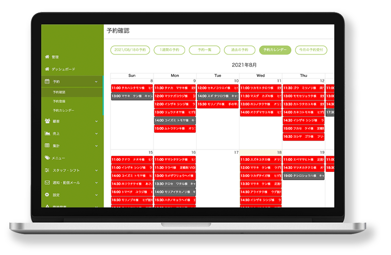 スタッフさんも専用アカウントで予約確認や予約登録がスマートフォンから操作を行うことが可能です。