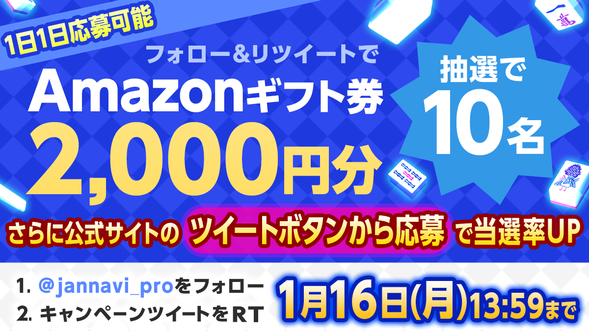 ① ジャンナビ麻雀オンライン公式Twitterアカウント@jannavi_proをフォロー