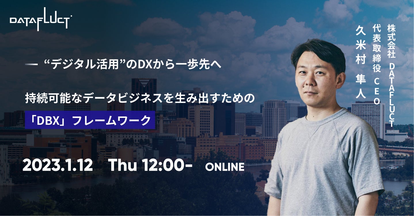本セミナーでは、「社内におけるDX企画の通し方」「企業戦略・事業戦略と接続できるデータビジネスの考え方(DBX:Data Business Transformation)」「持続可能なデータビジネス企画フレームワーク(DBC: Data Busines Canvas)」「成功しやすいデータ活用ストーリーロジック(DSL: Data Story Logic)」をDATAFLUCT代表取締役CEO 久米村が解説します。