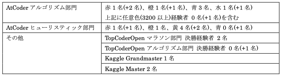 ※その他の実績については、AtCoderでの実績を持つ個人と重複しているケースもございます。
