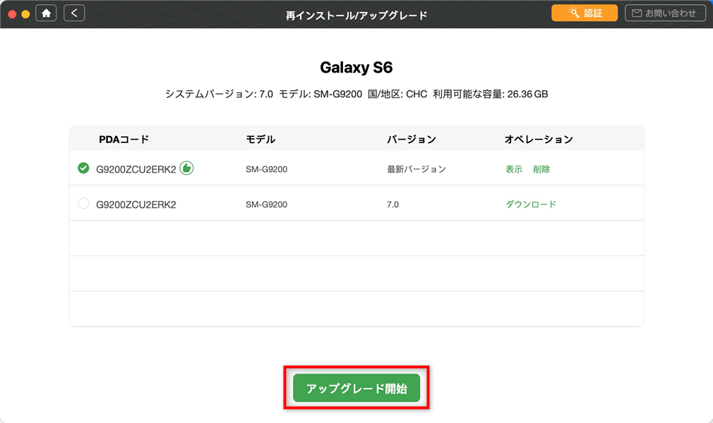 Step 4: Galaxyの最新のバージョンを選択して、ダウンロードしてください。