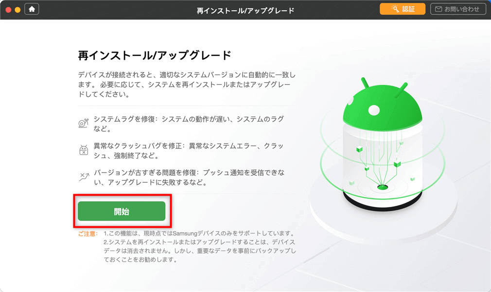 Step 2: 下記の内容を確認した上、「開始」ボタンをクリックします。