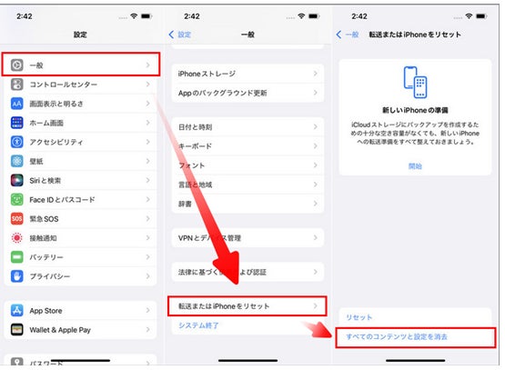 - 3、デバイスの全てのコンテンツと設定を消去してみる