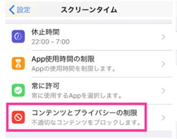 iPhoneの機能制限で制限できる項目は次の通りです。