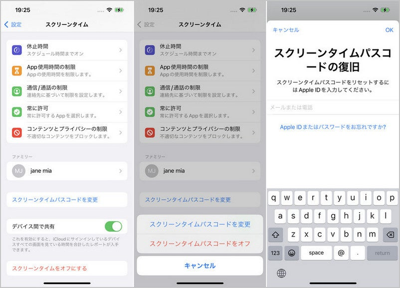 - 2、パスコードを変更しスクリーンタイムをオフにする