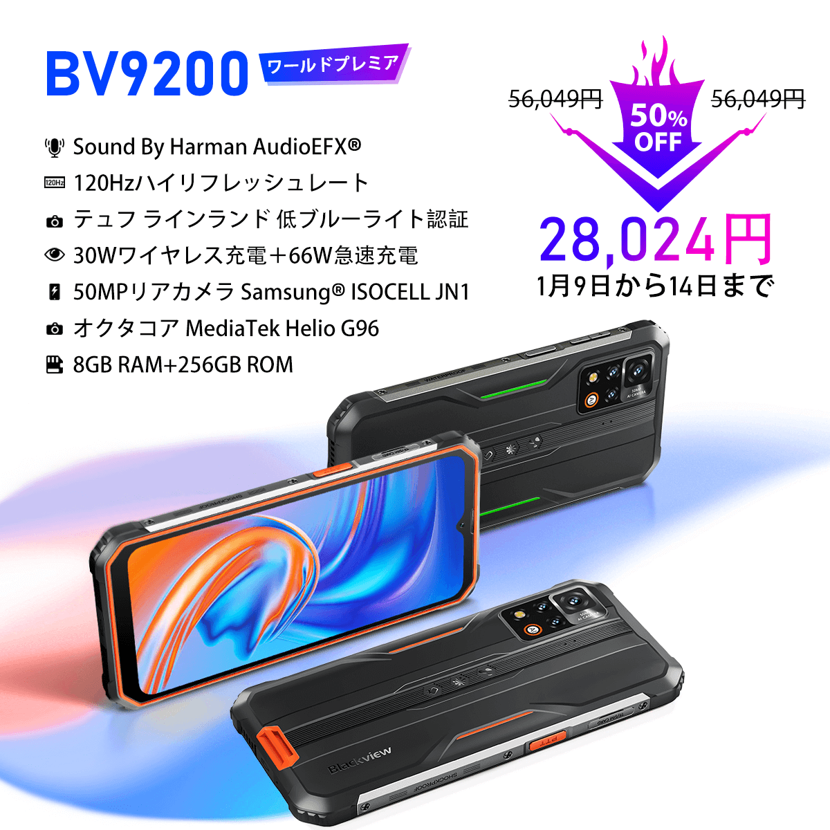 Arcsoftカメラ&Harman AudioEFXサウンド、5000Amhバッテリー&66W有線&30Wワイヤレス充電、MediaTek Helio G96&Doke3.1搭載のフラッグシップタフネススマホ、BV9200。