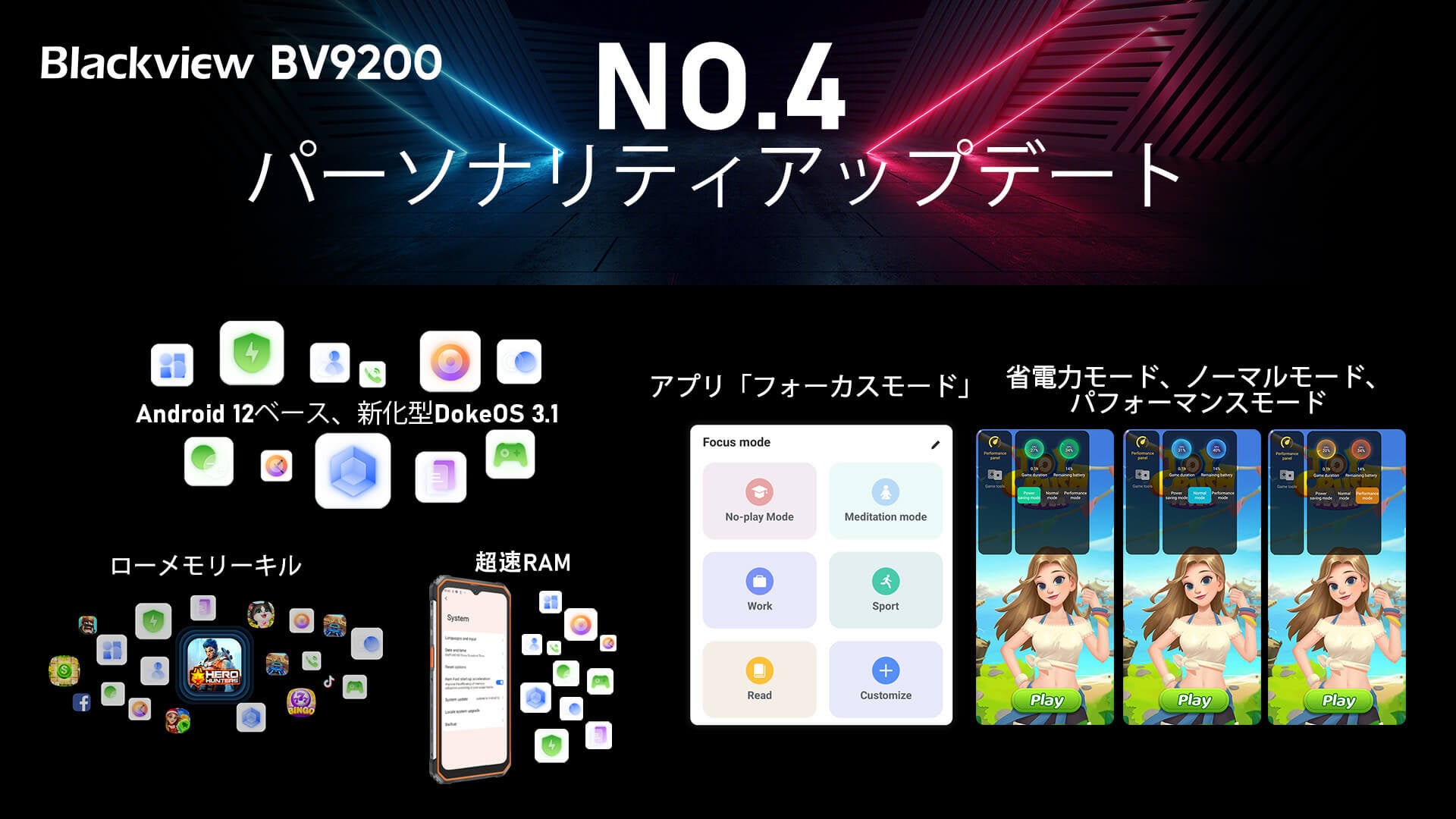 Blackviewの独自OSの最新版のDoke 3.1を搭載するBV9200はエンターテイメント、電池持ち、作業効率、独自性、実用性の5つのアップグレードが施されています。