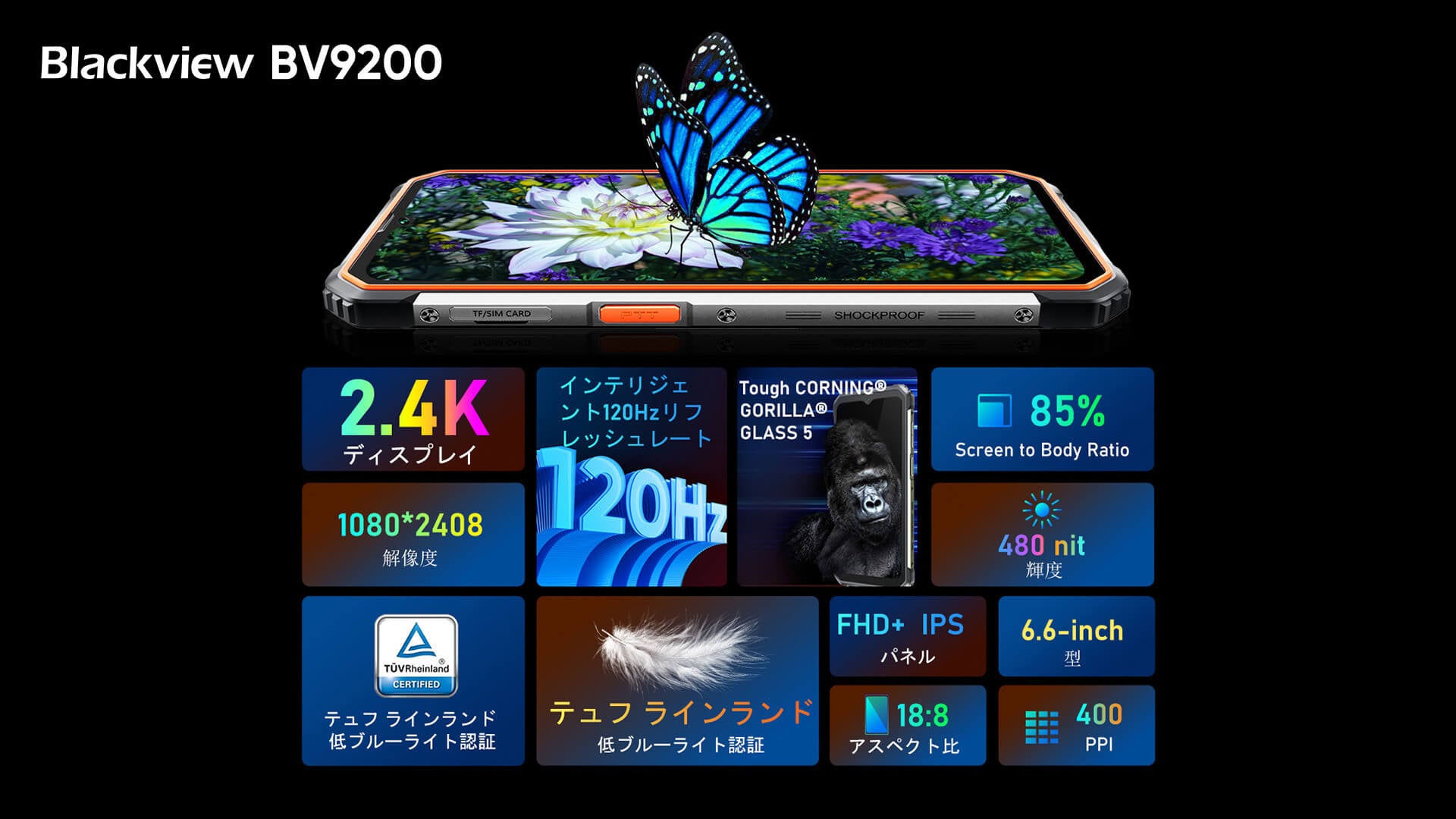Blackview BV9200は120Hzの高リフレッシュレートと2.4Kの高解像度に対応した¥6.6インチディスプレイを採用し、鮮明な画面表示を提供します。