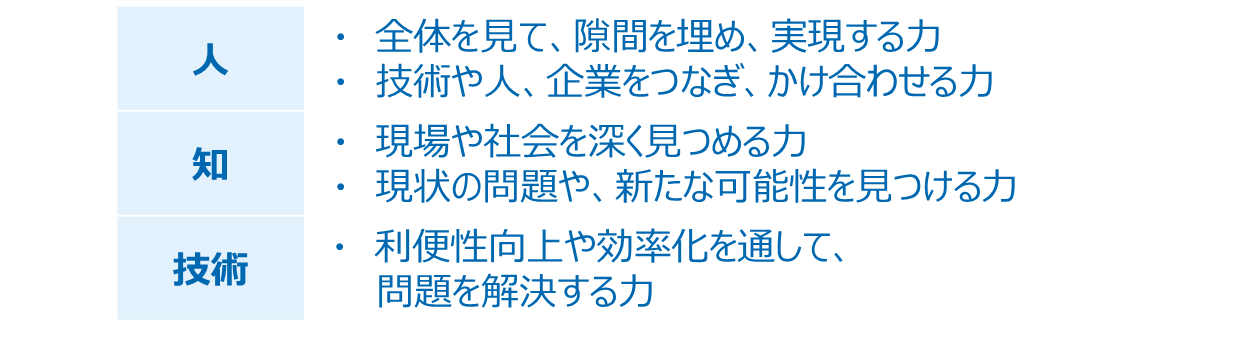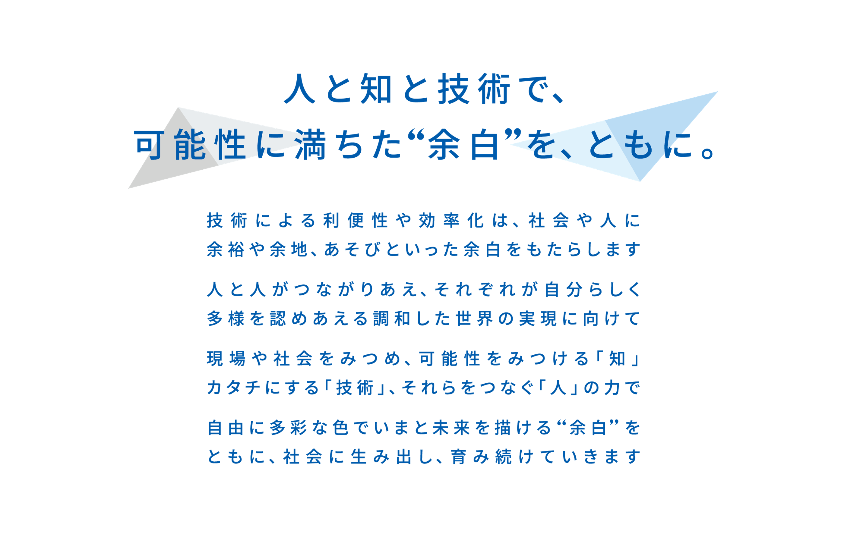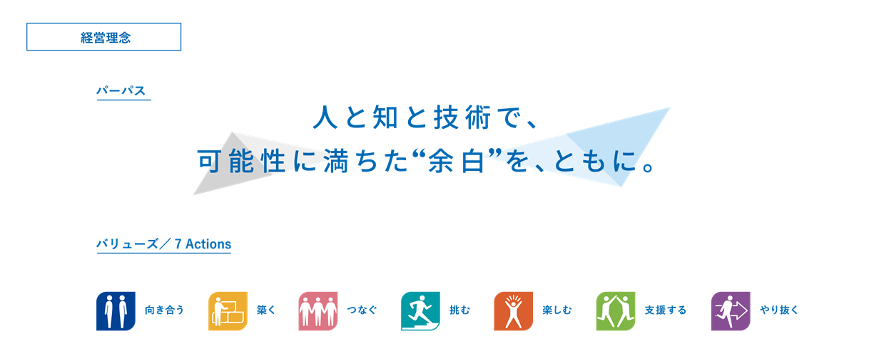 これまでの経営理念でも掲げてきた「人と知と技術」は、私たちの価値の源泉であり、独自のアイデンティティを表現しています。