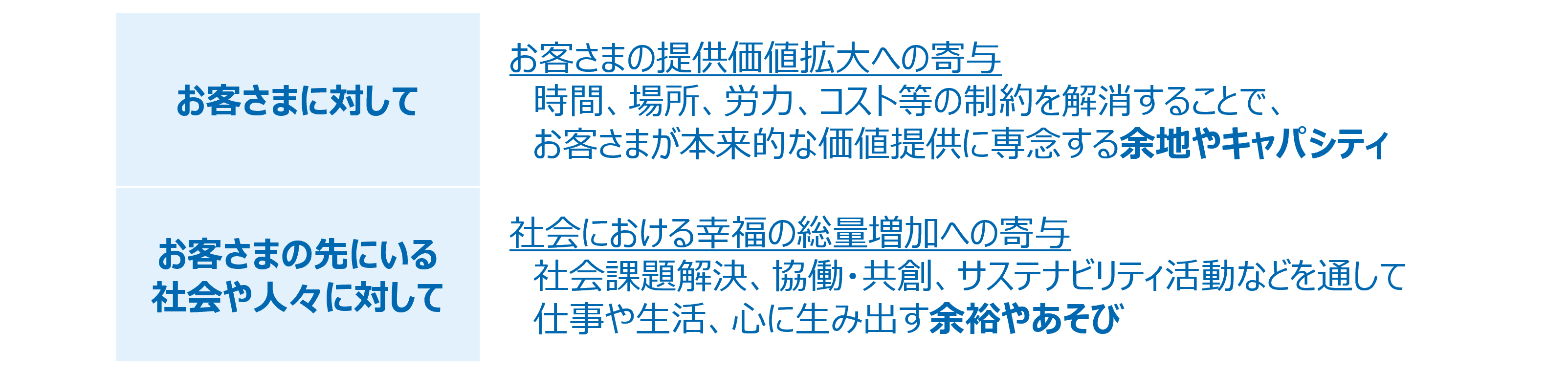過去、現在、未来を通じて、私たちがお客さまや社会に対して生み出し続けている価値を表現しています。