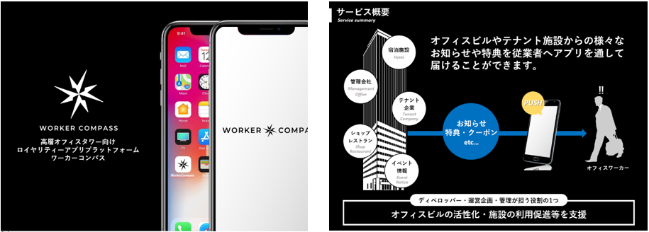 オフィスタワー入居テナント企業・商業の活性化につながる高層オフィスタワー向けアプリです。ビル・テナント施設からのお知らせやクーポンなどをオフィスワーカーへダイレクトに届ける事ができ、商業施設とオフィスワーカーを繋げることで、商業施設・テナントの活性化を支援いたします。