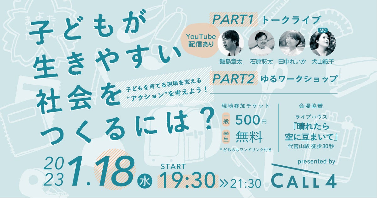 「子どもが生きやすい社会をつくるには?」をテーマにそれぞれが日々行なっていることや、現場の声、今後めざすことなどをお話しいただきます。