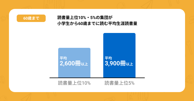 - 読書量上位5%は小学生から60歳までに平均約3,900冊以上の本を読む