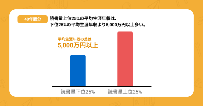 - 読書量上位25%と下位25%で平均生涯年収の差は5,000万円を超える