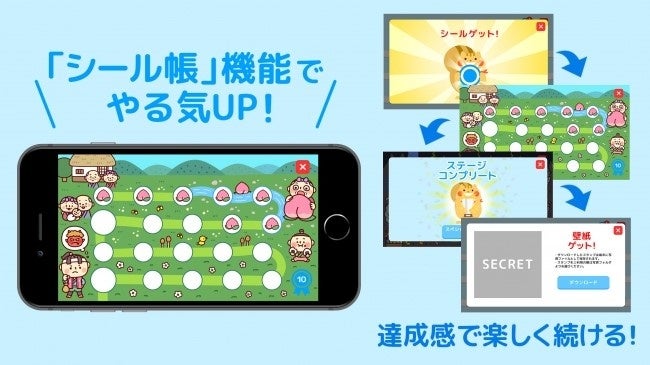 「ログインする」「絵本を読む」などのミッションをクリアすることで貰える「シール」を、「シール帳」に貼っていくと、シール帳の物語が進んでいき、全てのシールが集まり物語が完結すると、コンプリート報酬として限定コンテンツをGETできます。そしてまた新たなストーリーが開放されていきます。自分の手で物語を進めていく「ワクワク感」と、シールを集めてコンテンツを獲得する「達成感」で、楽しく続けることができる、新しいログインボーナスです。