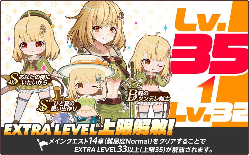 ※メインクエスト14章をクリアするとEXTRA LEVELを35まで上げられるようになります。