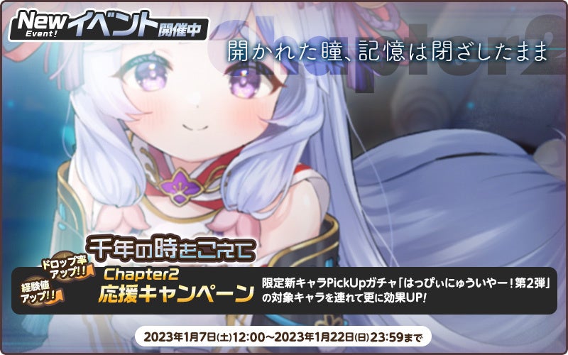 2023年1月1日(日)より行っておりますストーリーイベント「千年の時をこえて」にて、chapter2を解放いたしました。