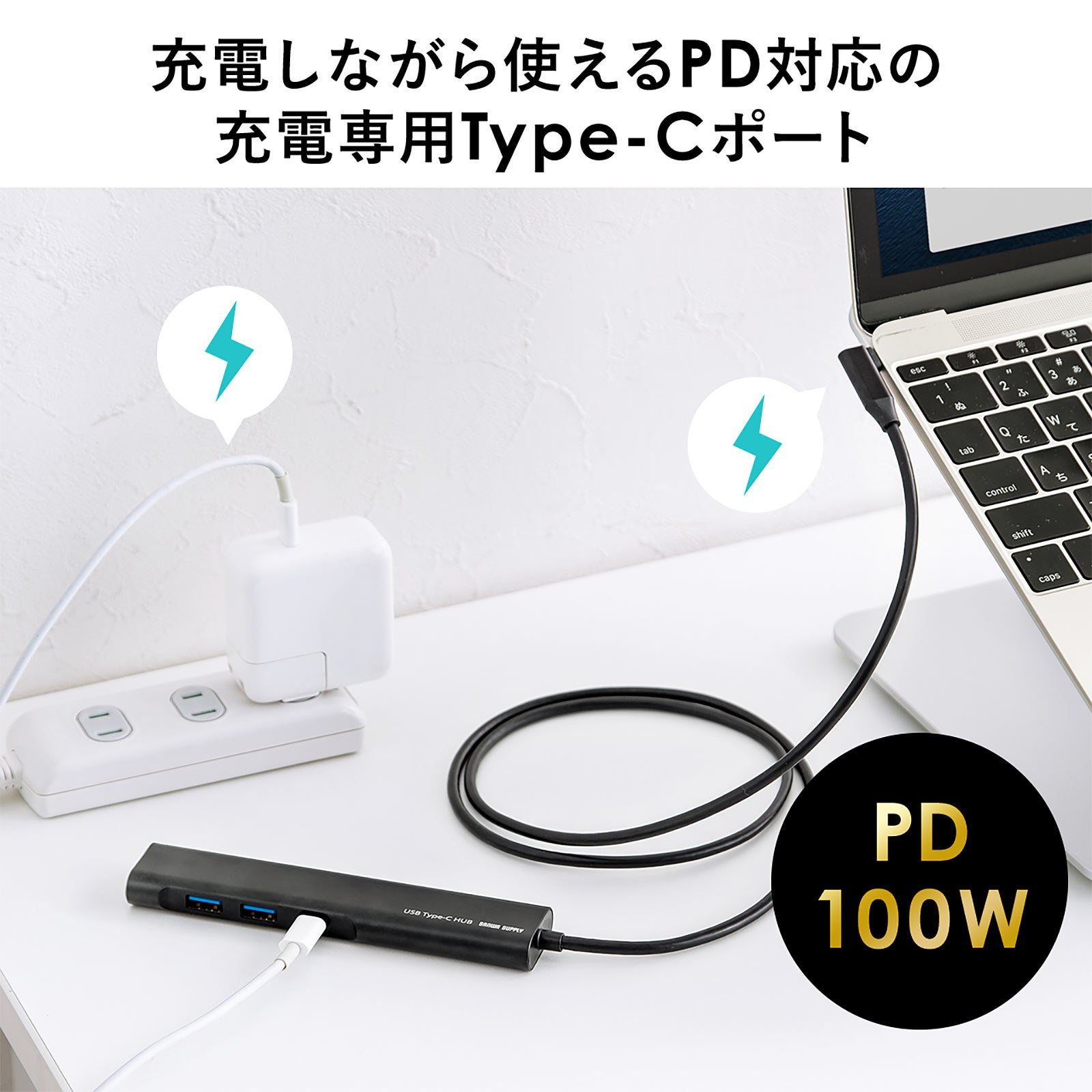 USB Power Delivery (USB PD)対応のACアダプタを接続すれば本製品経由でパソコンの充電も行えます。