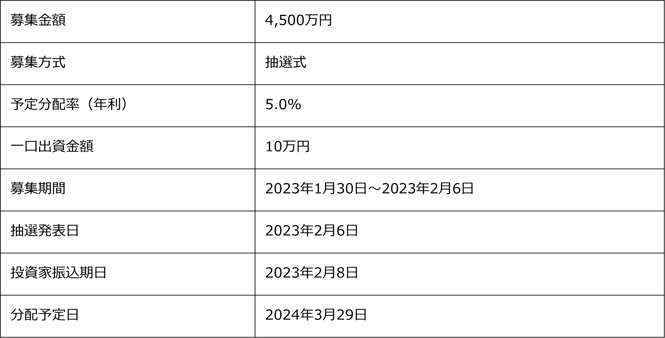 優先劣後方式により、投資家の皆様へは優先出資分として450口を募集します。一方、当社はファンド全体の 調達額の11%にあたる300口を劣後出資で行います。万一、損失が発生した場合、当社が先に損失部分を負担しますので、投資家の皆様は、当社より優先して出資金の返還を受けることができます。