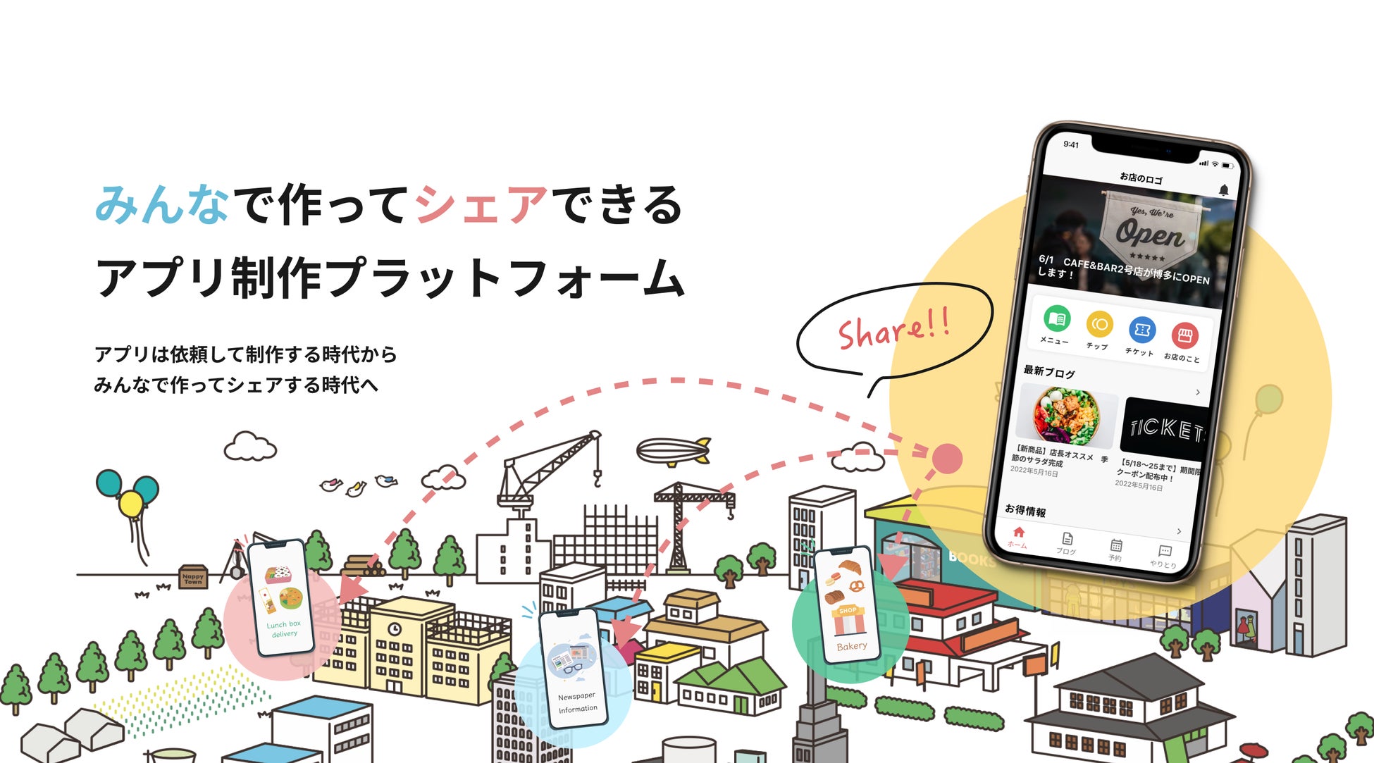 アプリをシェアしてくれた先行ユーザーには、その貢献に対する報酬を支払い、専門家以外がアプリをみんなで制作し販売する新しいエコシステムを実現します。