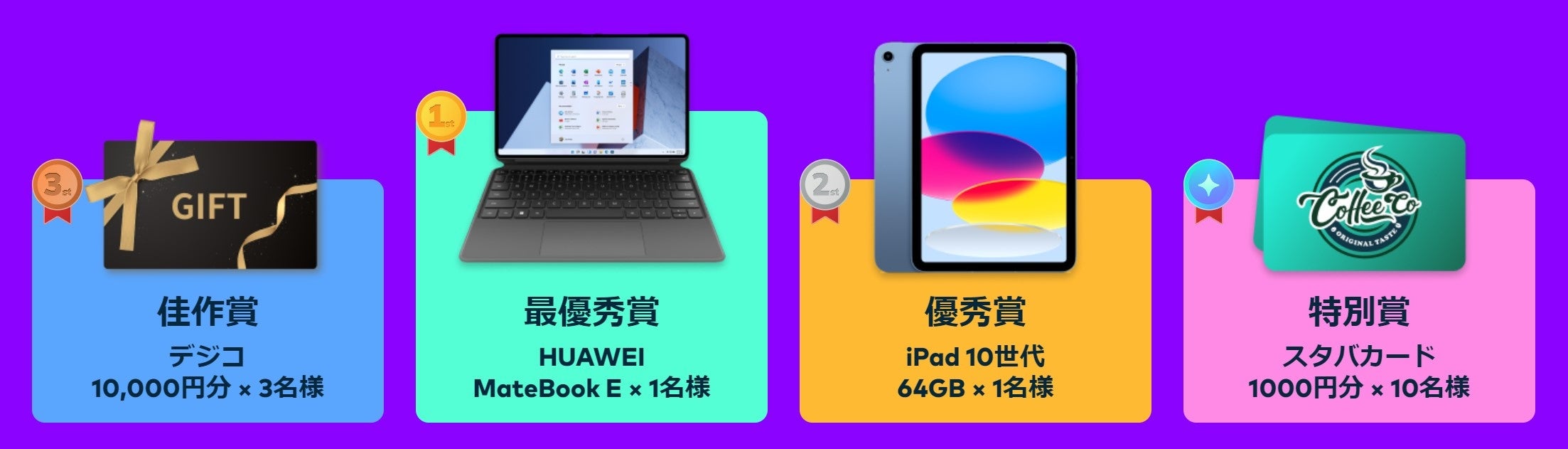 - 『総額 20万円以上』入賞作品へ豪華賞品が贈られます