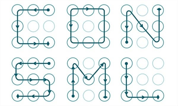 画面上の9つの点から指でパターンを描くことです。画面上の点をなぞる順番によってバターンを認証します。