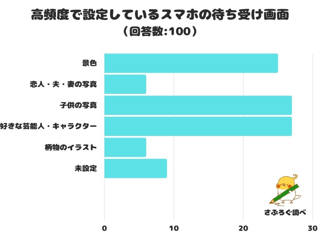 高頻度で設定しているスマホの待ち受け画面をアンケートにて調査したところ、1位は「子供の写真」「好きな芸能人・キャラクター」でした。