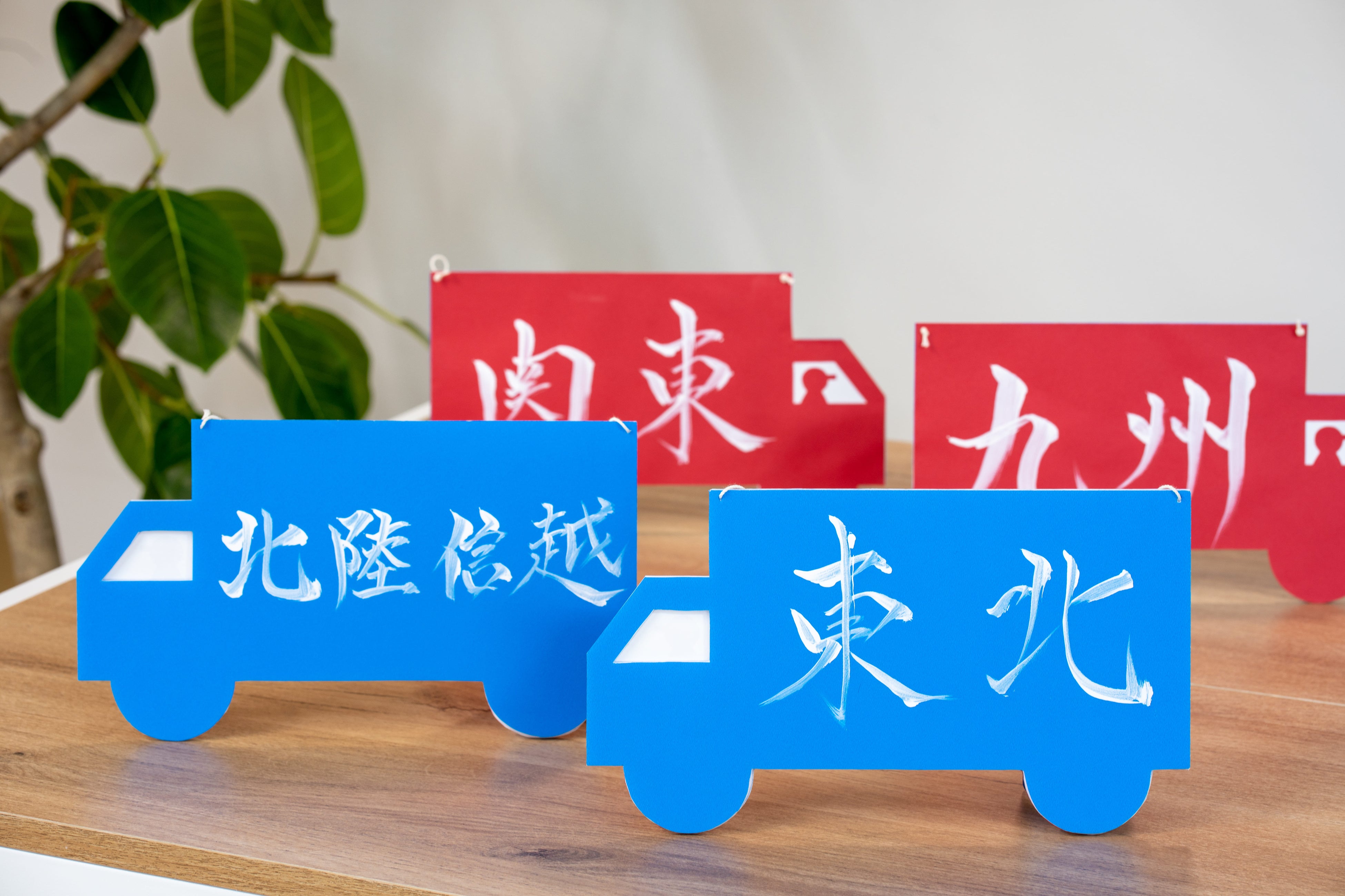 弊社の製品である運送管理システム「LogiX(ロジックス)」の導入地域ブロック順に4つの会議室名といたしました。また、うち一つの会議室は子供の面倒を見ながら仕事をすることも可能な場とし、キッズスペースとしての利用も推奨しています。次回のオフィス移転時には全地方の名前を冠した会議室を設置できるよう、精進いたします。