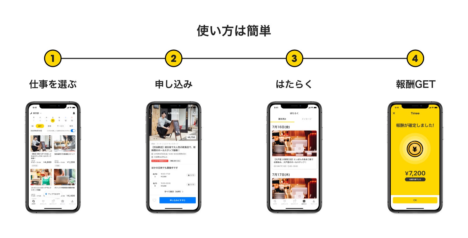 タイミーは「働きたい時間」と「働いてほしい時間」をマッチングするスキマバイトサービスです。働き手は、働きたい案件を選ぶだけで、応募・面接が無しですぐに働くことができ、勤務終了後すぐにお金を受け取ることができます。 事業者は、来て欲しい時間や求めるスキルを設定するだけで、条件にあった働き手が自動的にマッチングします。