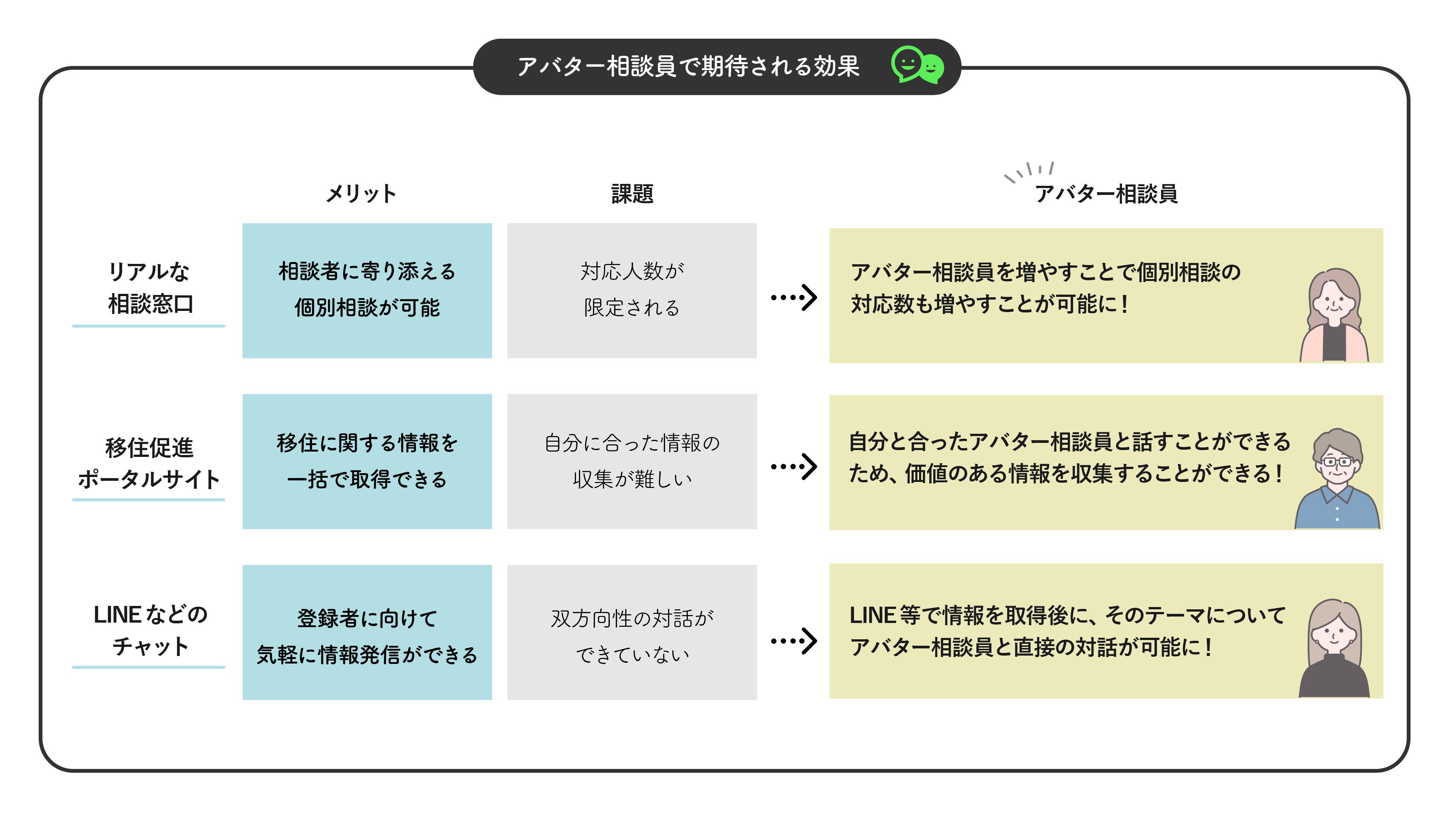 一方、既存の相談窓口だけでは対応しきれないほどの相談者の増加や、よりパーソナライズされた移住相談の実現においての課題が未だ存在しています。