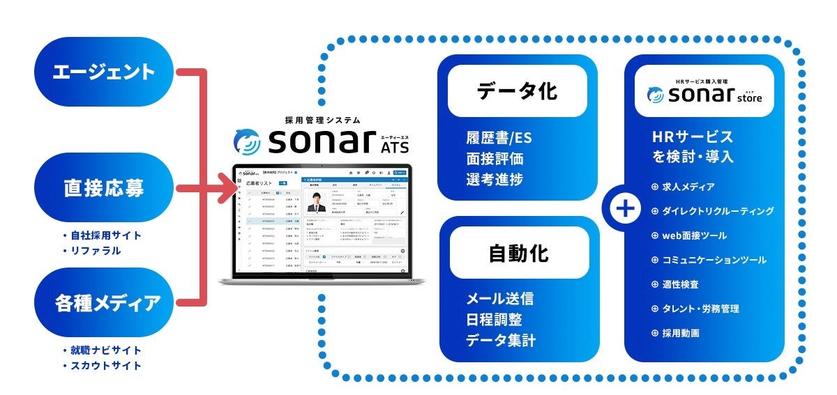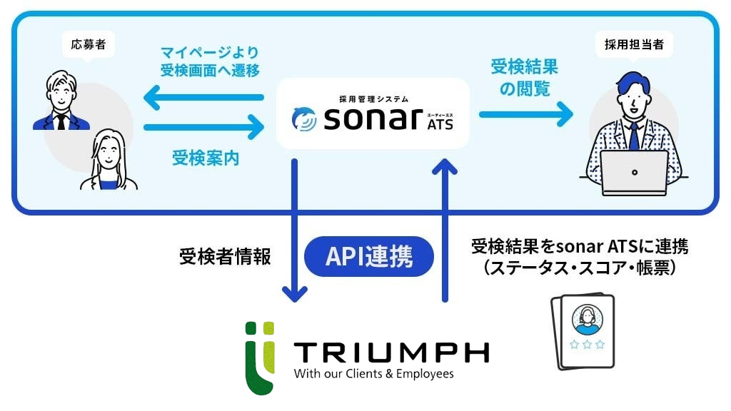 「sonar ATS」は新卒・中途採用の管理、応募者へのあらゆる連絡を自動化できる採用管理システムであり、「CUBIC TRIUMPH ver.」をご利用の企業からかねてより連携のリクエストを頂いていたことから、この度、本格連携を開始しました。